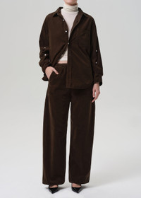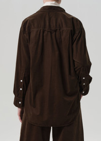 The Kayla Shirt is a timeless button-up reimagined in lightweight baby corduroy with a soft, velvety hand. Designed with a relaxed silhouette and full-length sleeves, it drapes effortlessly for a laid-back yet polished feel. Wear it tucked, layered, or left loose for versatile everyday styling. This fit is true to size. Looks Like: Medium to dark olive green corduroy long sleeve button front shirt Feels Like: Lightweight and breathable baby corduroy that is smooth to the touch From our HUMANITY Collection DETAILS Body Length: 30 1/2" Sleeve Length: 22" Model is 5'10" and wearing a size Small Fabric Content: 100% Cotton Care Instructions: Machine wash cold inside out with like colors. Do not bleach. Tumble dry low. Made in USA with imported materials 9103-1548_COSTE