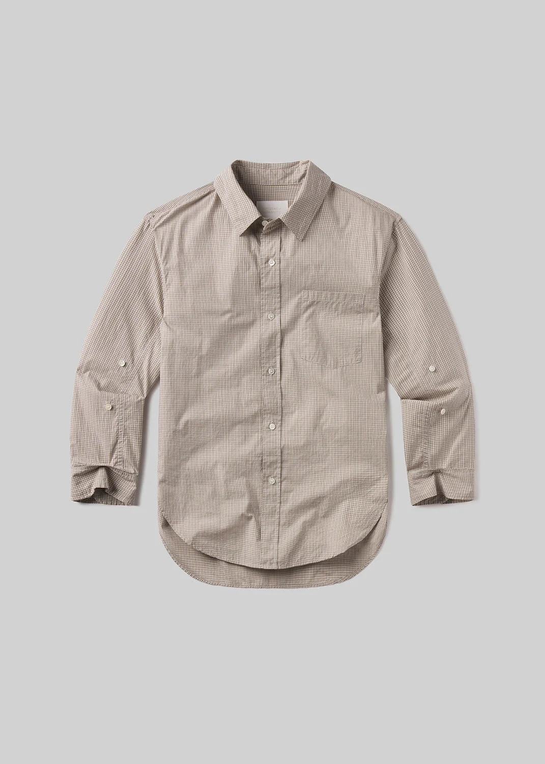 The Kayla Shirt is a timeless button-up crafted from airy Japanese shirting with a soft, breathable hand. Designed in a relaxed silhouette, it drapes effortlessly through the body and sleeve for a laid-back yet polished fit. The light beige plaid adds subtle texture and dimension, making it an easy staple to wear tucked, layered, or left undone for everyday versatility. This fit is true to size. Looks Like: Light beige plaid woven long sleeve button front collared shirt Feels Like: Crisp and cool to the touch poplin From our HUMANITY Collection DETAILS Body Length: 30 1/2" Chest: 48 1/2" Sleeve Length: 22" Model is 5'10" and wearing a size Small Fabric Content: 100% Cotton Care Instructions: Machine wash cold inside out with like colors. Do not bleach. Tumble dry low. Made in Turkey with imported materials 9103-1888_CRFCF