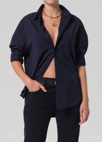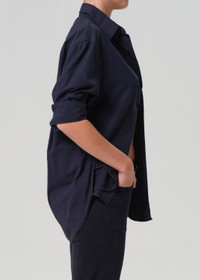 Our Kayla Shirt is a must-have for every wardrobe. An oversized silhouette and high-low hem give new dimension to a timeless staple. This fit is intended to be relaxed. Size down for a closer fit. Looks Like: True, classic navy Feels Like: Ultra-lightweight cotton From our HUMANITY Collection maternity DETAILS Body Length: 30 1/2" Sleeve Length: 22" Model is 5'10" and wearing a size Small Fabric Content: 100% Cotton Care Instructions: Machine wash cold inside out with like colors. Do not bleach. Tumble dry low. Made in Indonesia with imported materials 9103b-1359_NVY