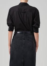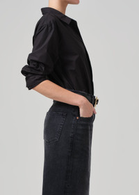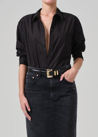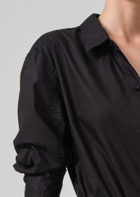 Our best-selling Kayla Shirt just got a long awaited update. This wardrobe must-have features a slightly more fitted silhouette, perfect for day to night. This classic fit still has the soft drop shoulder, the perfect drape throughout the body, offering the perfect dimension to a timeless staple. This fit is true to size. Looks Like: Matte black Fits Like: Lightweight cotton From our HUMANITY Collection maternity DETAILS Body Length: 26" Sleeve Length: 23 3/8" Model is 5'10" and wearing a size Small Fabric Content: 100% Cotton Care Instructions: Machine wash cold inside out with like colors. Do not bleach. Tumble dry low. Made in Turkey with imported materials 9293-1359_BLK