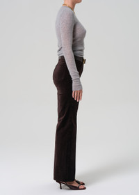 The Kimberly 70's Flare is crafted from ultra soft stretch velvet with a refined, smooth finish. The dark brown flare silhouette sits high on the waist and falls to a full-length finish, creating a sleek, elongating shape. Perfect paired with fitted tops or blouses for a polished, retro-inspired look. This fit is true to size. Looks Like: Dark brown velvet pant Feels Like: Ultra soft stretch velvet with a refined, smooth polished texture From our HUMANITY Collection DETAILS Closure: Zip Fly Rise: 11" Inseam: 32" Leg Opening: 24" Model is 5'10" and wearing a size 27 Fabric Content: 54% Cotton 44% Rayon %2 Spandex Care Instructions: Machine wash cold inside out with like colors. Do not bleach. Tumble dry low. Made in Turkey with imported materials 2245-1184_ESPR