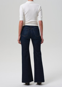The Kimberly is a high-rise flare inspired by classic '70s silhouettes, designed to elongate the leg and contour the waist. Crafted from comfort stretch denim with a super soft hand, it offers lasting shape and all-day ease. The Madison wash—a dark indigo with soft fading and whiskering—adds a touch of vintage refinement. Style with slim knits or structured shirting for a clean finish. This fit is true to size. Looks Like: Dark indigo denim pant Feels Like: Comfort stretch, denim with a super soft hand for all day wearability This product is made with regenerative cotton from Citizens of Humanity Group’s Regenerative Cotton Program. Our program collaborates closely with farmers both domestically and internationally, nurturing growth, fostering education, and encouraging the widespread adoption of regenerative agricultural practices. Eco-Indigo is a first-of-its-kind, high-performance textile dye. It transforms renewable resources like sugar through fermentation and green chemistry to create vibrant, lasting COLOR. This groundbreaking process reduces energy consumption, CO₂ emissions, and dependence on fossil fuels, thus help preserving our environment. Now applied to our regenerative cotton denim, Eco-Indigo is coloring the way for a more sustainable future. From our HUMANITY Collection DETAILS Closure: Zip Fly Rise: 11" Inseam: 32" Leg Opening: 24" Model is 5'10" and wearing a size 27 Fabric Content: 99% Regenerative Cotton 1% Elastane Care Instructions: Machine wash cold inside out with like colors. Do not bleach. Tumble dry low. Made in Turkey with imported materials 2245C-1854_MDSN
