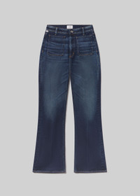 The Kimberly is a high-rise flare designed to elongate the leg and contour the waist. Finished with front patch pockets, it blends vintage inspiration with modern utility. Crafted from comfort stretch archive denim with a soft, broken-in hand, the Mirka wash—a rich dark indigo with subtle fading—adds depth and dimension. Pair with a slim knit or structured top for effortless polish. This fit is true to size. Looks Like: Dark indigo denim pant with front patch pocket detailing Feels Like: Comfort stretch, archive denim with a super soft hand for all day wearability From our HUMANITY Collection DETAILS Closure: Zip Fly Rise: 11" Inseam: 32" Leg Opening: 24" Model is 5'10" and wearing a size 27 Fabric Content: 98% Cotton 2% Polyurethane Care Instructions: Machine wash cold inside out with like colors. Do not bleach. Tumble dry low. Made in Turkey with imported materials 2235B-1549_MIRKA