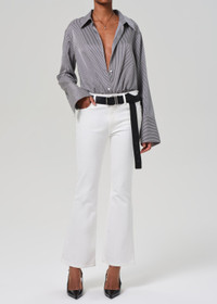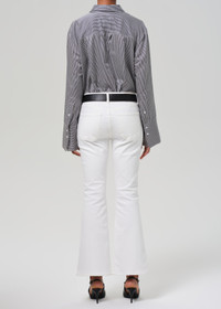 Channeling the sophistication of 70’s glamour, the Lilah offers a modern take on the decade defining fit. Designed to elongate the legs, this fit is flatteringly slim through the thighs before kicking out to flared hems. This fit is true to size. Looks Like: Clean off white denim Feels Like: Signature soft stretch denim designed to hold its shape all-day From our HUMANITY Collection DETAILS Closure: Zip Fly Rise: 10 3/4" Inseam: 32 1/2" Leg Opening: 20 1/2" Model is 5'10" and wearing a size 27 Fabric Content: 94% Cotton 4% Polyester 2% Elastane Care Instructions: Machine wash cold inside out with like colors. Do not bleach. Tumble dry low. Made in Turkey with imported materials 2037-1816_SWHT
