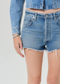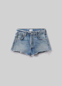 The Loro Short is crafted from 100% regenerative cotton, featuring a high-rise fit, short inseam, and raw hem for a laid-back, vintage-inspired look. This non-stretch denim piece offers structure and comfort, making it an essential for warm weather styling. Pair it with a casual tee or a flowy blouse for a relaxed, effortlessly chic summer outfit. This fit is true to size. Looks Like: Medium to dark indigo denim short with fading and whiskering Feels Like: Rigid, non-stretch cotton denim with a soft hand for all day wearability This product is made with regenerative cotton from Citizens of Humanity Group’s Regenerative Cotton Program. Our program collaborates closely with farmers both domestically and internationally, nurturing growth, fostering education, and encouraging the widespread adoption of regenerative agricultural practices. From our HUMANITY Collection DETAILS Closure: Button Fly Rise: 11 1/4" Inseam: 2 1/2" Leg Opening: 26" Model is 5'10 and wearing a size 27 Fabric: 100% Regenerative Cotton Care Instructions: Machine wash cold inside out with like colors. Do not bleach. Tumble dry low. Made in Turkey with imported materials 2213-3011_GOWER