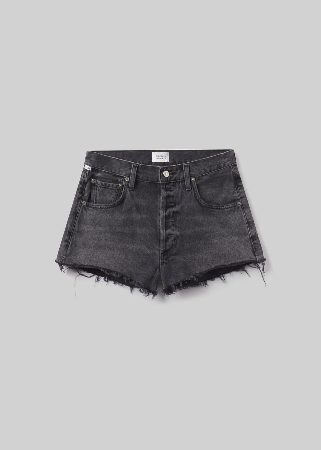 The Loro Short is crafted from 100% regenerative cotton, featuring a high-rise fit, short inseam, and raw hem for a laid-back, vintage-inspired look. This non-stretch denim piece offers structure and comfort, making it an essential for warm weather styling. Pair it with a casual tee or a flowy blouse for a relaxed, effortlessly chic summer outfit. This fit is true to size. Looks Like: Vintage black denim short with fading and whiskering Feels Like: Rigid, non-stretch cotton denim with a soft hand for all day wearability This product is made with regenerative cotton from Citizens of Humanity Group’s Regenerative Cotton Program. Our program collaborates closely with farmers both domestically and internationally, nurturing growth, fostering education, and encouraging the widespread adoption of regenerative agricultural practices. From our HUMANITY Collection DETAILS Closure: Button Fly Rise: 11 1/4" Inseam: 2 1/2" Leg Opening: 26" Model is 5'10 and wearing a size 27 Fabric: 100% Regenerative Cotton Care Instructions: Machine wash cold inside out with like colors. Do not bleach. Tumble dry low. Made in Turkey with imported materials 2213-3007_VBLL