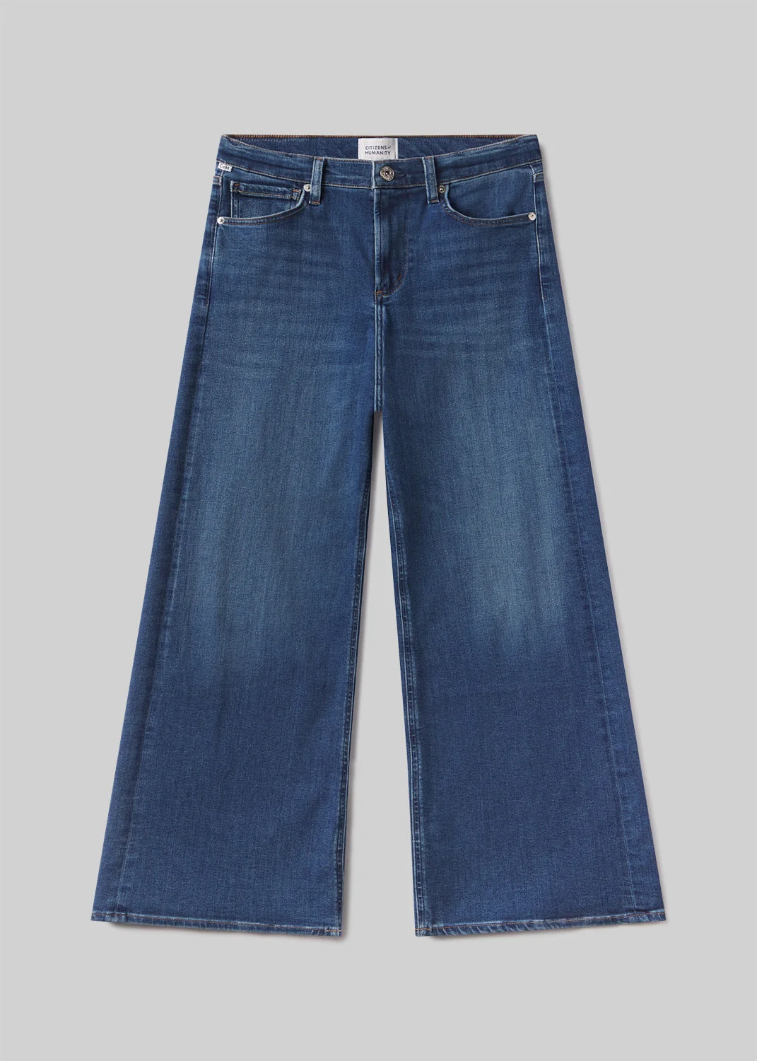 The Lyra is a vintage-inspired wide leg that sits high on the waist with a relaxed top block and full-length inseam. Crafted from soft stretch denim with a lightweight feel, Ambry is a versatile medium-dark indigo with subtle fading—ideal with everything from oversized knits to tailored shirting. This fit is true to size. Looks Like: Medium to dark indigo denim pant Feels Like: Soft, stretch denim with a lightweight feel From our HUMANITY Collection DETAILS Closure: Zip Fly Rise: 11 1/2" Inseam: 32" Leg Opening: 24" Model is 5'10" and wearing a size 27 Fabric Content: 81% Regenerative Cotton 11% Lyocell 6% Elastane Care Instructions: Machine wash cold inside out with like colors. Do not bleach. Tumble dry low. Made in Turkey with imported materials 2209-1691_AMBRY