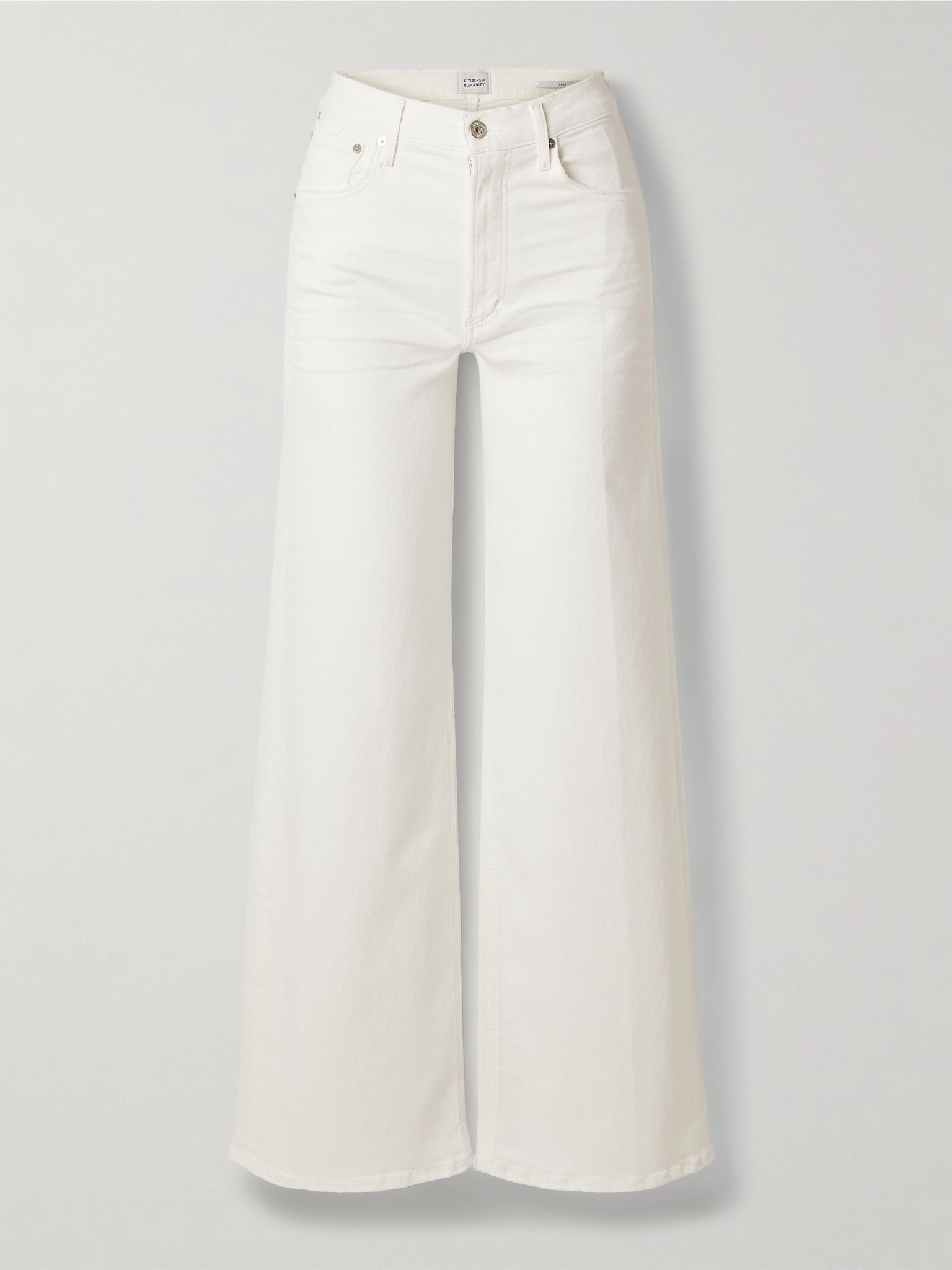 Citizens of Humanity's jeans are designed to capture the laid-back spirit of Los Angeles. Made from white denim, this 'Lyra Long' pair sits on the waist and has wide legs. Wear yours with a graphic tee. Size & Fit - Fits true to size, however those who are between sizes should take the smaller size - Mid-rise, cut for a wide-leg fit - Mid-weight, slightly stretchy denim - Size 26 jeans have an inside leg of 32"/ 81cm - Model is 177cm/ 5'10" and is wearing a size 26 Details & Care - White denim - Button and concealed zip fastening at front - 94% cotton, 4% polyester, 2% elastane - Machine wash - Designer wash: Soft White