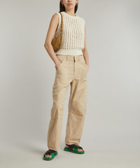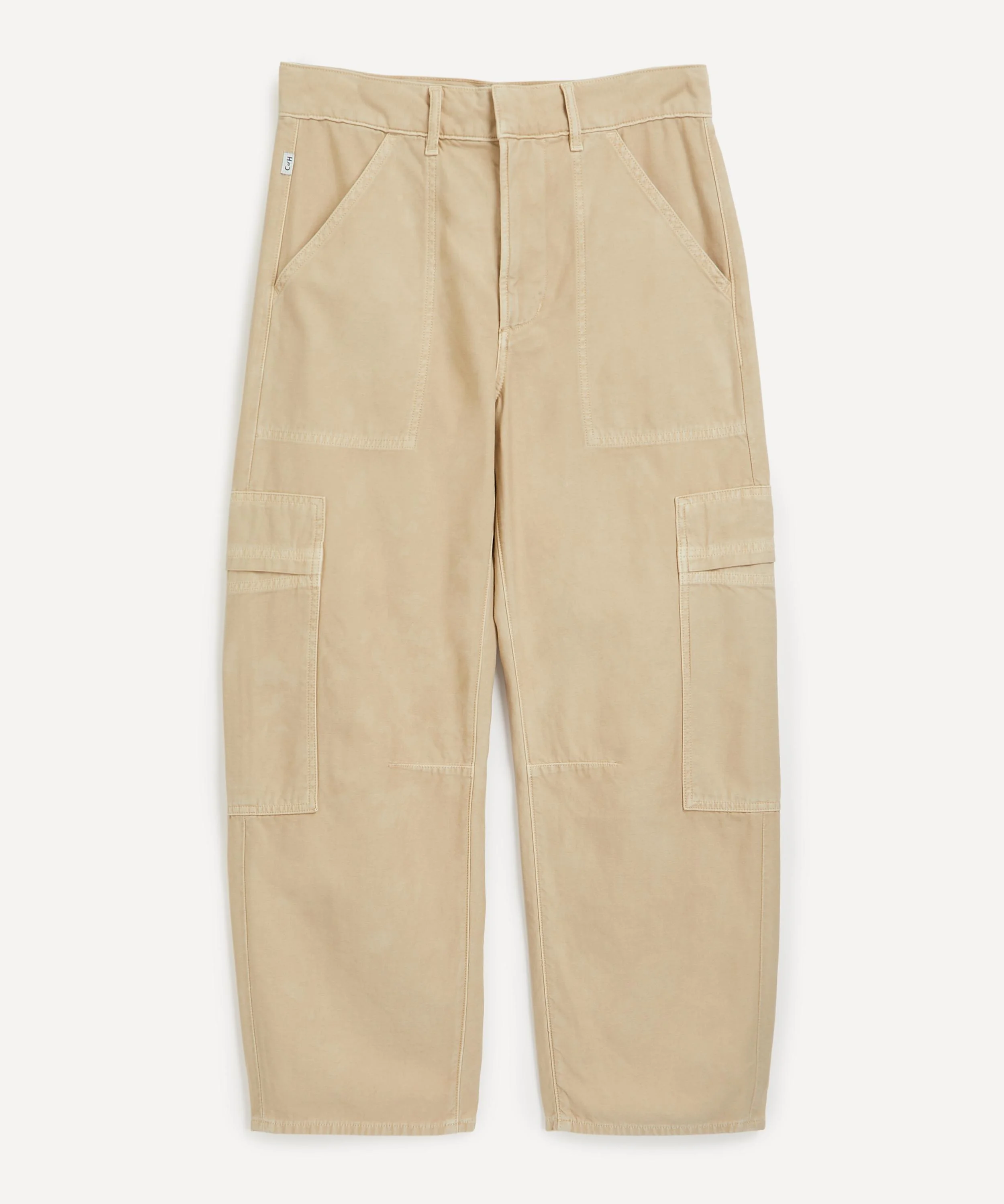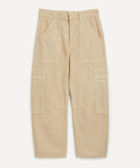 DETAILS Marcelle Low Slung Easy Cargo trousers Rigid, non-stretch cotton twill Mid-rise Relaxed, straight leg Full length Rise: 11 2/4” Inseam: 27” Leg opening: 17 ½” Zip fly Side pockets Utility pockets Rear patch pockets Cargo detailing SIZE & FIT 179cm/5'10.5"; Chest: 81cm; Waist: 64cm; Hip: 89cm and wears a size 27 COMPOSITION & CARE 100% Cotton Machine wash cold inside-out with similar colours. Do not bleach. Tumble dry low