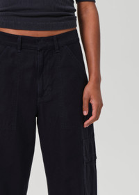 Easy and effortless. Our Marcelle features cargo-inspired detailing and relaxed straight leg that tapers at the ankle. Crafted a breathable but rigid, non-stretch twill for all day wear - style yours back to heels or sneakers. This fit is true to size. Looks Like: Clean dark navy blue Feels Like: Non-stretch twill cotton with a smooth hand This product is made with regenerative cotton from Citizens of Humanity Group’s Regenerative Cotton Program. Our program collaborates closely with farmers both domestically and internationally, nurturing growth, fostering education, and encouraging the widespread adoption of regenerative agricultural practices. From our HUMANITY Collection DETAILS Closure: Zip Fly Rise: 11 3/4" Inseam: 27" Leg Opening: 17 1/2" Model is 5'10" and is wearing a Size 27 Fabric Content: 100% Regenerative Cotton Care Instructions: Machine wash cold inside out with like colors. Do not bleach. Tumble dry low. Made in Turkey with imported materials 2078-576_TNAVY