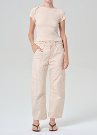 Easy and effortless. Our Marcelle features cargo-inspired detailing and relaxed straight leg that tapers at the ankle. Crafted a breathable but rigid, non-stretch twill for all day wear - style yours back to heels or sneakers. This fit is true to size. Looks Like: Washed out soft pink Feels Like: Midweight yet breathable rigid twill with a soft hand that gives a vintage feel. This product is made with regenerative cotton from Citizens of Humanity Group’s Regenerative Cotton Program. Our program collaborates closely with farmers both domestically and internationally, nurturing growth, fostering education, and encouraging the widespread adoption of regenerative agricultural practices. From our HUMANITY Collection DETAILS Closure: Zip Fly Rise: 11 3/4" Inseam: 27" Leg Opening: 17 1/2" Model is 5'10" and is wearing a Size 27 Fabric: 100% Regenerative Cotton Care Instructions: Machine wash cold inside out with like colors. Do not bleach. Tumble dry low. Made in Turkey with imported materials 2078-576_RSELL