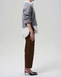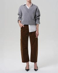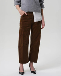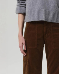 The Marcelle Low Slung Easy Cargo Corduroy In Manuka by Citizens is a utility inspired pant crafted in a soft stretch baby corduroy featuring cargo-style pockets. Perfect for transitional fall looks. - Material: 98% Cotton 2% Elastane - Details: High rise, tapered leg. Zip fly closure. - Fit: Rise: 11 3/4" Inseam: 27 1/2" Leg Opening: 17 3/4" - Made in USA - Style: 2078-041 _MNUKA - Care Instructions: Machine wash cold inside out with like colors. Do not bleach. Tumble dry low.