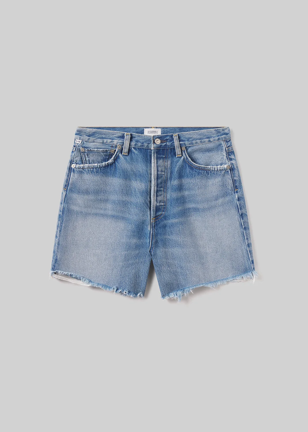 Our signature short now with a longer inseam. The Marlow Long is relaxed mid-rise offering an easy fit with undone edges. Perfect for a getaway or running errands on the weekend. These ultra-comfortable cut-offs can be styled with virtually anything. We like to pair ours with a classic tee or light sweater. This fit is true to size. Looks Like: Light to medium indigo denim short with raw hem Feels Like: Rigid, non stretch cotton denim with a soft hand for all day wearability This product is made with regenerative cotton from Citizens of Humanity Group’s Regenerative Cotton Program. Our program collaborates closely with farmers both domestically and internationally, nurturing growth, fostering education, and encouraging the widespread adoption of regenerative agricultural practices. From our HUMANITY Collection DETAILS Closure: Button Fly Rise: 12" Inseam: 6 1/2" Leg Opening: 23 3/4" Model is 5'10 and wearing a size 27 Fabric Content: 100% Regenerative Cotton Care Instructions: Machine wash cold inside out with like colors. Do not bleach. Tumble dry low.ac Made in Turkey with imported materials 2080-1810_DEI