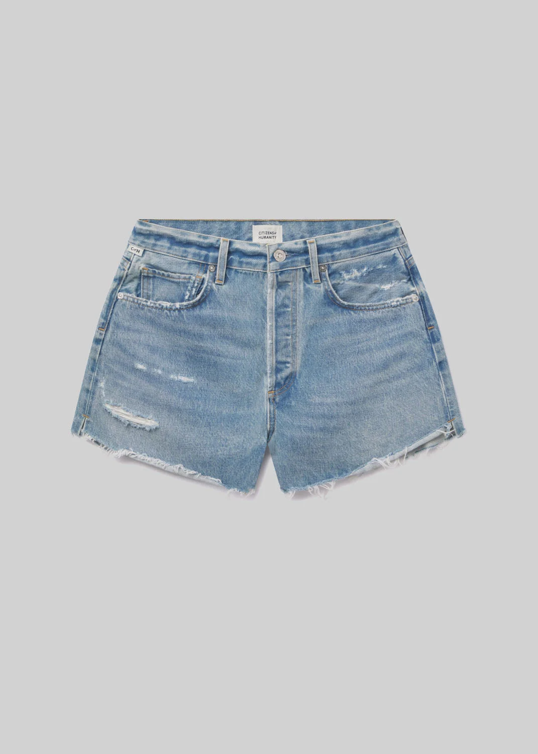 A true summer staple, this relaxed mid-rise offers an easy fit with undone edges. Perfect for a getaway, these ultra-comfortable cut-offs can be styled with virtually anything. We like to pair ours with a classic tee or light sweater. This fit is true to size. Looks Like: Medium indigo short with raw hem and slight distressing Feels Like: Rigid, non-stretch regenerative cotton with a soft hand feel This product is made with regenerative cotton from Citizens of Humanity Group’s Regenerative Cotton Program. Our program collaborates closely with farmers both domestically and internationally, nurturing growth, fostering education, and encouraging the widespread adoption of regenerative agricultural practices. From our HUMANITY Collection DETAILS Closure: Button Fly Rise: 12" Inseam: 3 1/4" Leg Opening: 24 1/2" Model is 5'10 and wearing a size 27 Fabric Content: 100% Regenerative Cotton Care Instructions: Machine wash cold inside out with like colors. Do not bleach. Tumble dry low. Made in Turkey with imported materials 996G-3011_SELTZ