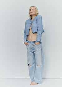 The ‘Miro’ offers a subtle take on the barrel silhouette, cut high at the waist with a relaxed shape that softly tapers to the ankle. Crafted from rigid regenerative cotton, the light indigo wash features vintage-inspired fading and destruction for a worn-in feel. A laid-back staple that works with everything from structured shirting to soft knits and any shoe in your lineup. This fit is true to size. Looks Like: Light indigo denim pant with destruction at the knees Feels Like: Rigid, non-stretch cotton denim with a soft hand for all day wearability This product is made with regenerative cotton from Citizens of Humanity Group’s Regenerative Cotton Program. Our program collaborates closely with farmers both domestically and internationally, nurturing growth, fostering education, and encouraging the widespread adoption of regenerative agricultural practices. Eco-Indigo is a first-of-its-kind, high-performance textile dye. It transforms renewable resources like sugar through fermentation and green chemistry to create vibrant, lasting COLOR. This groundbreaking process reduces energy consumption, CO₂ emissions, and dependence on fossil fuels, thus help preserving our environment. Now applied to our regenerative cotton denim, Eco-Indigo is coloring the way for a more sustainable future. From our HUMANITY Collection DETAILS Closure: Zip Fly Rise: 12" Inseam: 27 1/2" Leg Opening: 17 1/2" Model is 5'10" and wearing a size 27 Fabric Content: 100% Regenerative Cotton Care Instructions: Machine wash cold inside out with like colors. Do not bleach. Tumble dry low. Made in Turkey with imported materials 2149-1810_DAMR