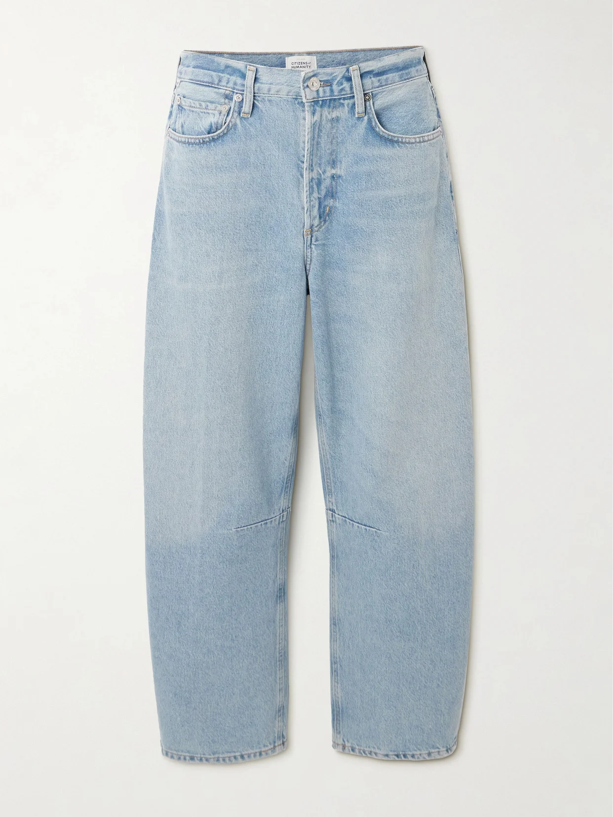 Citizens of Humanity's 'Miro' jeans have a trendy relaxed barrel shape that makes anything you style them with look effortlessly cool. They're cut from faded-blue recycled-denim and lightly distressed along the pockets. Lower-Impact Materials. This product is made using at least 50% lower-impact materials or ingredients. Find out more about our NET SUSTAIN criteria here.