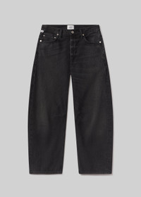 The ‘Miro’ is a subtle take on the barrel silhouette, cut with a relaxed taper and high rise for a modern yet easy fit. Crafted from rigid regenerative cotton with a soft, broken-in feel, the washed black denim features nuanced fading and marbling for a worn-in look. A versatile option that works with anything from sharp shirting to laid-back layers—finished with a clean ankle-length hem to suit any shoe. This fit is true to size. Looks Like: Washed black denim pant Feels Like: Rigid, non-stretch cotton denim with a soft hand for all day wearability This product is made with regenerative cotton from Citizens of Humanity Group’s Regenerative Cotton Program. Our program collaborates closely with farmers both domestically and internationally, nurturing growth, fostering education, and encouraging the widespread adoption of regenerative agricultural practices. From our HUMANITY Collection DETAILS Closure: Zip Fly Rise: 11 1/4" Inseam: 27" Leg Opening: 17 3/4" Model is 5'10" and wearing a size 27 Fabric Content: 100% Regenerative Cotton Care Instructions: Machine wash cold inside out with like colors. Do not bleach. Tumble dry low. Made in Turkey with imported materials 2149-3062_RAINE