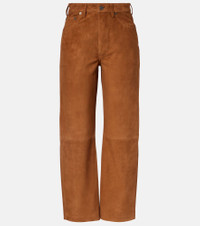 Founded in 2003, Los Angeles label Citizens of Humanity has become synonymous with quality. The Miro low-rise pants are crafted from soft suede and feature a sleek straight-leg silhouette exuding contemporary sophistication. Product Details - Material: 100% goat leather (suede) - Care instructions: specialist clean - Made in Turkey - Designer color name: Toasted Caramel - Item color: brown - Partially lined - Lining: 100% polyester - Belt loops - Closure: zip and button fastening - Pockets: five pockets - Contains non-textile parts of animal origin - Item number: P01115498 Size & Fit - True to size - Non-stretchy fabric - Straight leg - Mid-rise - The model seen in the picture is 178cm-5'10" and wearing a size 26