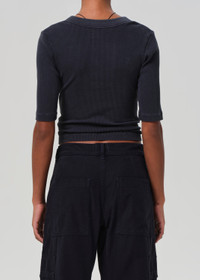 Designed from a form-fitting rib, this versatile henley can be worn fully buttoned or undone for a more relaxed look. This fit is true to size. Looks Like: Dark charcoal 3/4 sleeve henley Feels Like: Rib organic cotton with the softest hand From our HUMANITY Collection DETAILS Body Length: 21 1/2" Sleeve Length: 11 3/4" Model is 5'10" and is wearing a size Small Fabric Content: 49% Organic Cotton 49% Tencel Lyocell 2% Spandex Care Instructions: Machine wash cold inside out with like colors. Do not bleach. Tumble dry low. Made in USA with imported materials 9417-3004_CHCL