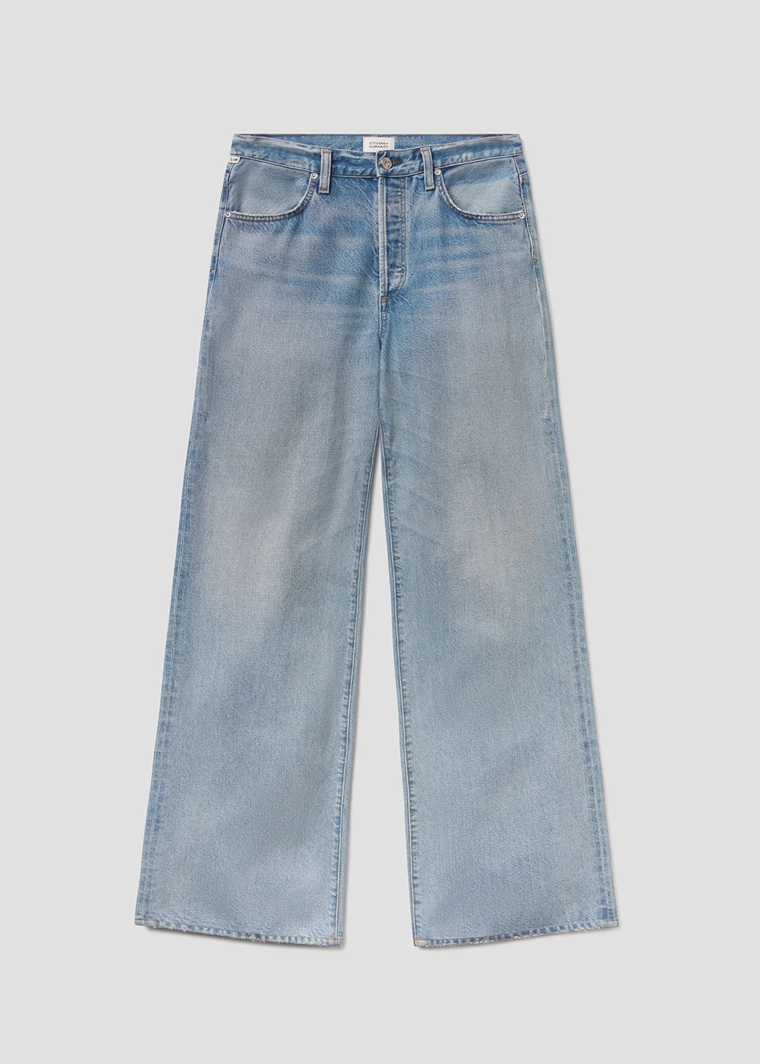 The ‘Paloma’ is a high-rise baggy jean with a full-length, wide-leg silhouette for a laid-back yet intentional shape. Crafted from rigid recycled cotton denim with a soft hand, it offers a vintage-inspired drape. Chalice is a versatile medium wash—style with a simple tee or tucked button-down for contrast. This fit is true to size. Looks Like: Light to medium indigo denim pant Feels Like: Rigid, non-stretch denim made with a blend of recycled cotton for a soft hand feel From our HUMANITY Collection DETAILS Closure: Zip Fly Rise: 11 3/4" Inseam: 32" Leg Opening: 24" Model is 5'10" and wearing a size 27 Fabric Content: 70% Lyocell 30% Pre-consumer Recycled Cotton Care Instructions: Machine wash cold inside out with like colors. Do not bleach. Tumble dry low. Made in Turkey with imported materials 1984D-3028_CHLCE