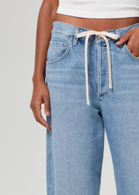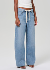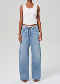 Our best-selling fit designed specifically for those with a smaller frame. The Brynn Jean is cut in a lightweight denim and designed with a wide leg, a drawstring waist, and a full length inseam. Can easily go from beach to dinner with the addition of some jewelry and a strappy heel. This fit is true to size. Looks Like: Light, vintage indigo with heavy fading and soft whiskering down the leg, finished hems Feels Like: Midweight, rigid, organic cotton with relaxed drape for ease From our HUMANITY Collection DETAILS Closure: Button Fly Rise: 12 1/4" Inseam: 28 1/2" Leg Opening: 21 3/4" Fabric Content: 100% Regenerative cotton Care Instructions: Machine wash cold inside out with like colors. Do not bleach. Tumble dry low. Made in USA with imported materials 2216-1136_BLLAC