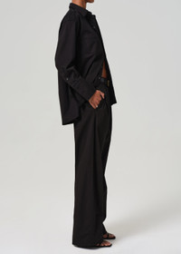 The Petra Trouser is crafted with expertly placed pleats and a relaxed fit, offering an effortlessly sophisticated silhouette. Made from a twill fabric with a hint of stretch, it combines comfort with refined tailoring. Perfect for both casual and elevated looks, style it with a simple blouse or a tucked-in sweater for a versatile, polished ensemble. This fit is true to size. Looks Like: Stark black trouser with pleat detailing Feels Like: Midweight rigid, non stretch twill made with regenerative cotton From our HUMANITY Collection DETAILS Closure: Zip Fly Rise: 12 1/2" Inseam: 30 1/2" Leg Opening: 24" Model is 5'10" and is wearing a Size 27 Fabric Content: 97% Cotton 3% Elastane Care Instructions: Machine wash cold inside out with like colors. Do not bleach. Tumble dry low. Made in Turkey with imported materials 2206-1696_BLK