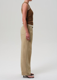 The ‘Petra’ is a high-rise, full-length trouser designed with sharp front pleats and a structured silhouette. Cut from rigid regenerative cotton twill, the midweight fabric holds its shape while offering all-day comfort. Gobi brings a neutral tone that complements crisp shirting or casual knits alike. This fit is true to size. Looks Like: Light to medium khaki trouser with front pleat detailing Feels Like: Rigid, non-stretch twill made to hold its shape all day long This product is made with regenerative cotton from Citizens of Humanity Group’s Regenerative Cotton Program. Our program collaborates closely with farmers both domestically and internationally, nurturing growth, fostering education, and encouraging the widespread adoption of regenerative agricultural practices. From our HUMANITY Collection DETAILS Closure: Zip Fly Rise: 12 1/2" Inseam: 30 1/2" Leg Opening: 24" Model is 5'10" and is wearing a Size 27 Fabric Content: 100% Regenerative Cotton 3% Care Instructions: Machine wash cold inside out with like colors. Do not bleach. Tumble dry low. Made in Turkey with imported materials 2206-576_GOBI