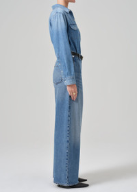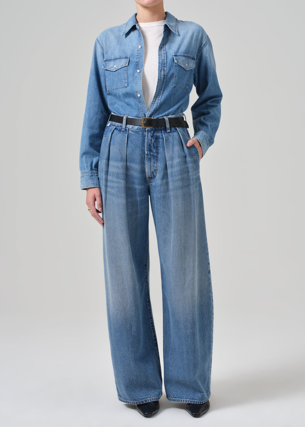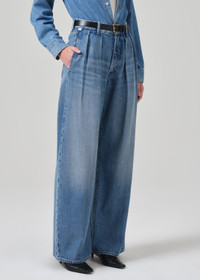 The Petra Trouser features expertly placed pleats and a relaxed fit. With its non-stretch denim, it offers a structured, refined silhouette that exudes effortless sophistication. Perfect for pairing with a classic tee for a laid-back day look or a tucked-in blouse for an elevated ensemble. This fit is true to size. Looks Like: Washed medium indigo Feels Like: Rigid recycled cotton blend with a vintage hand feel From our HUMANITY Collection DETAILS Closure: Zip Fly Rise: 12 1/2" Inseam: 32" Leg Opening: 23 1/4" Model is 5'10" and is wearing a Size 27 Fabric Content: 70% Lyocell 30% Pre-consumer Recycled Cotton Care Instructions: Machine wash cold inside out with like colors. Do not bleach. Tumble dry low. Made in USA with imported materials 2160-3028_NENSI