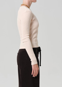 Minimal must-have. Our Pilar is crafted in our signature waffle rib with the perfect amount of stretch that will hold its shape all day. This fit is true to size. Looks Like: Light peach fitted long sleeve shirt Feels Like: Midweight super soft cotton with waffle thermal texture This product is made with regenerative cotton from Citizens of Humanity Group’s Regenerative Cotton Program. Our program collaborates closely with farmers both domestically and internationally, nurturing growth, fostering education, and encouraging the widespread adoption of regenerative agricultural practices. From our HUMANITY Collection DETAILS Body Length: 20 1/2" Shoulder to Shoulder: 14" Sleeve Length: 25" Model is 5'10" and wearing a size Small Fabric: 100% Regenerative Cotton Care Instructions: Machine wash cold inside out with like colors. Do not bleach. Tumble dry low. Made in USA with imported materials 9429-1785_SHRIM