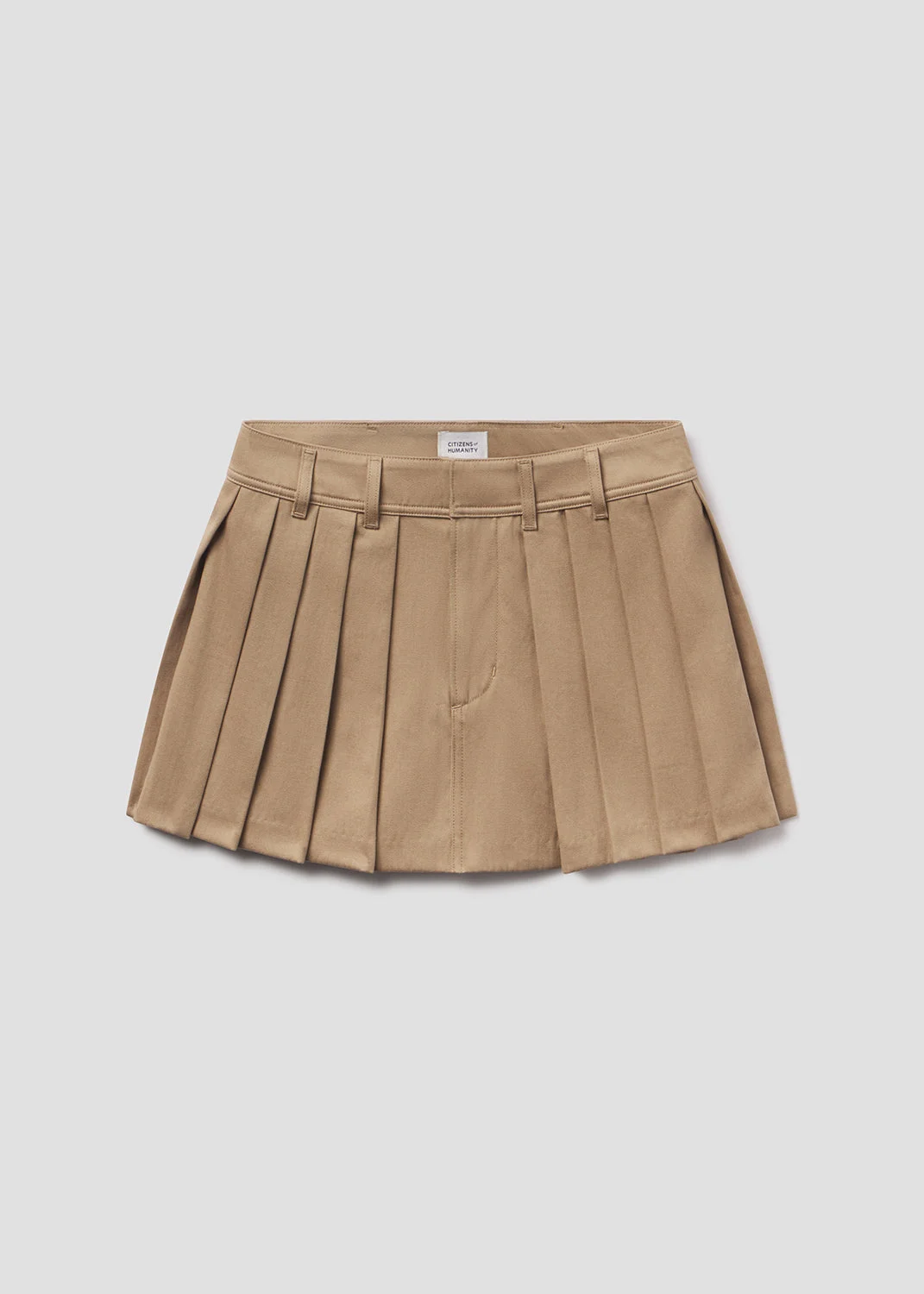 A clean, pleated mini cut in softened regenerative denim. The Juno wash—a deep, dark-to-medium indigo—adds polish to the structured silhouette. Style it with a crisp button-down or an oversized knit for contrast. This fit is true to size. Looks Like: Clean deep dark to medium indigo mini skirt with pleats Feels Like: Non-stretch, weightless denim washed down for a super soft feel This product is made with regenerative cotton from Citizens of Humanity Group’s Regenerative Cotton Program. Our program collaborates closely with farmers both domestically and internationally, nurturing growth, fostering education, and encouraging the widespread adoption of regenerative agricultural practices. From our HUMANITY Collection DETAILS Closure: Zip Fly Sweep: 84 1/8" Model is 5'10" and wearing a size 27 Fabric Content: 100% Regenerative Cotton Care Instructions: Machine wash cold. Made in USA with imported materials 3195-3071_KAKI