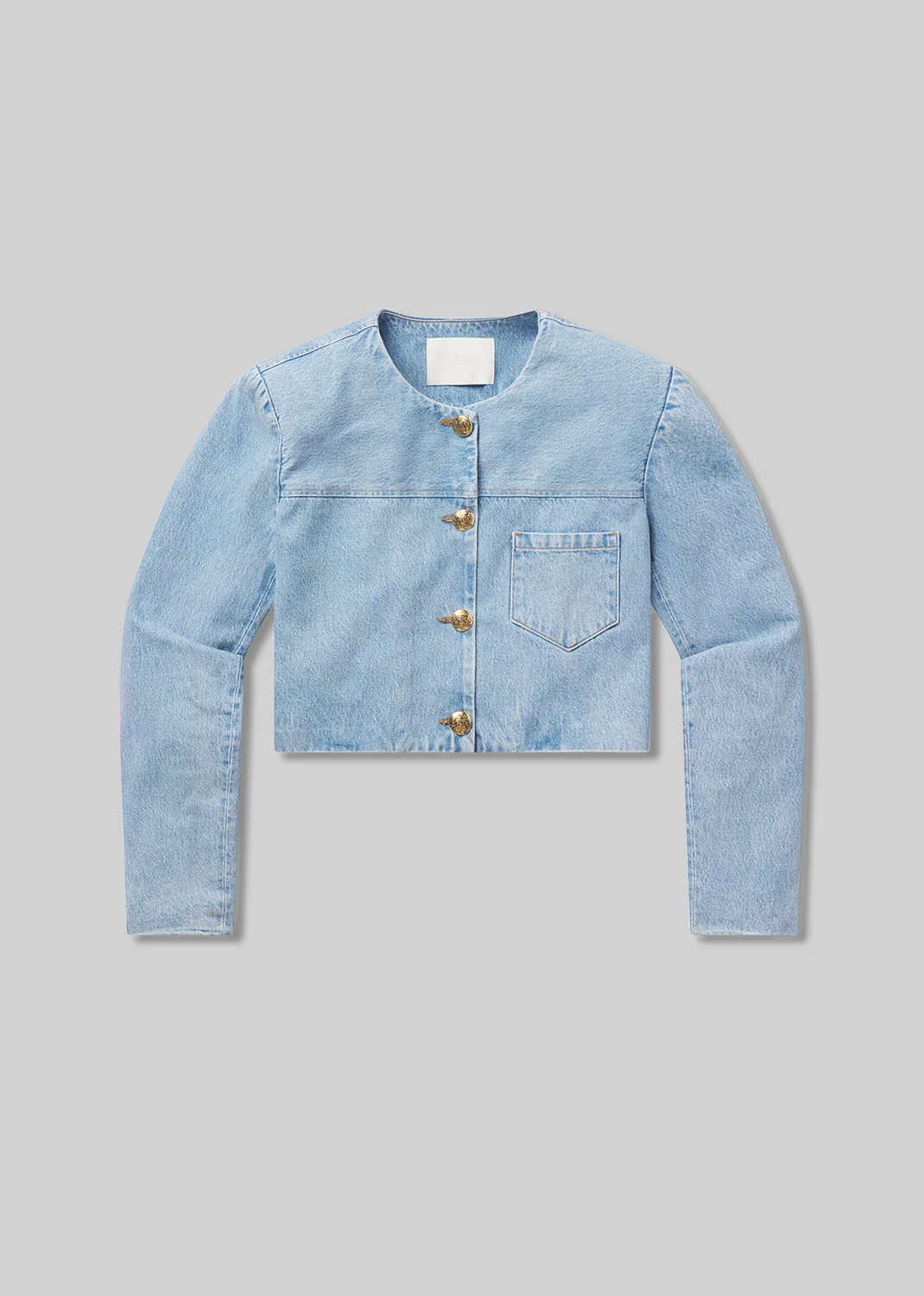 This vintage-inspired style features a slightly shortened length and boxy fit. This fit is true to size. Looks Like: Light indigo collarless jacket with gold button accent Feels Like: Rigid, non-stretch regenerative cotton with a soft hand feel This product is made with regenerative cotton from Citizens of Humanity Group’s Regenerative Cotton Program. Our program collaborates closely with farmers both domestically and internationally, nurturing growth, fostering education, and encouraging the widespread adoption of regenerative agricultural practices. Eco-Indigo is a first-of-its-kind, high-performance textile dye. It transforms renewable resources like sugar through fermentation and green chemistry to create vibrant, lasting COLOR. This groundbreaking process reduces energy consumption, CO₂ emissions, and dependence on fossil fuels, thus help preserving our environment. Now applied to our regenerative cotton denim, Eco-Indigo is coloring the way for a more sustainable future. From our HUMANITY Collection DETAILS Body Length: 18" Chest: 41" Sleeve Length: 24 1/2" Model is 5'10" and wearing a size Small Fabric Content: 100% Regenerative cotton Care Instructions: Machine wash cold inside out with like colors. Do not bleach. Tumble dry low. Made in USA with imported materials 5145-1810_DAMR