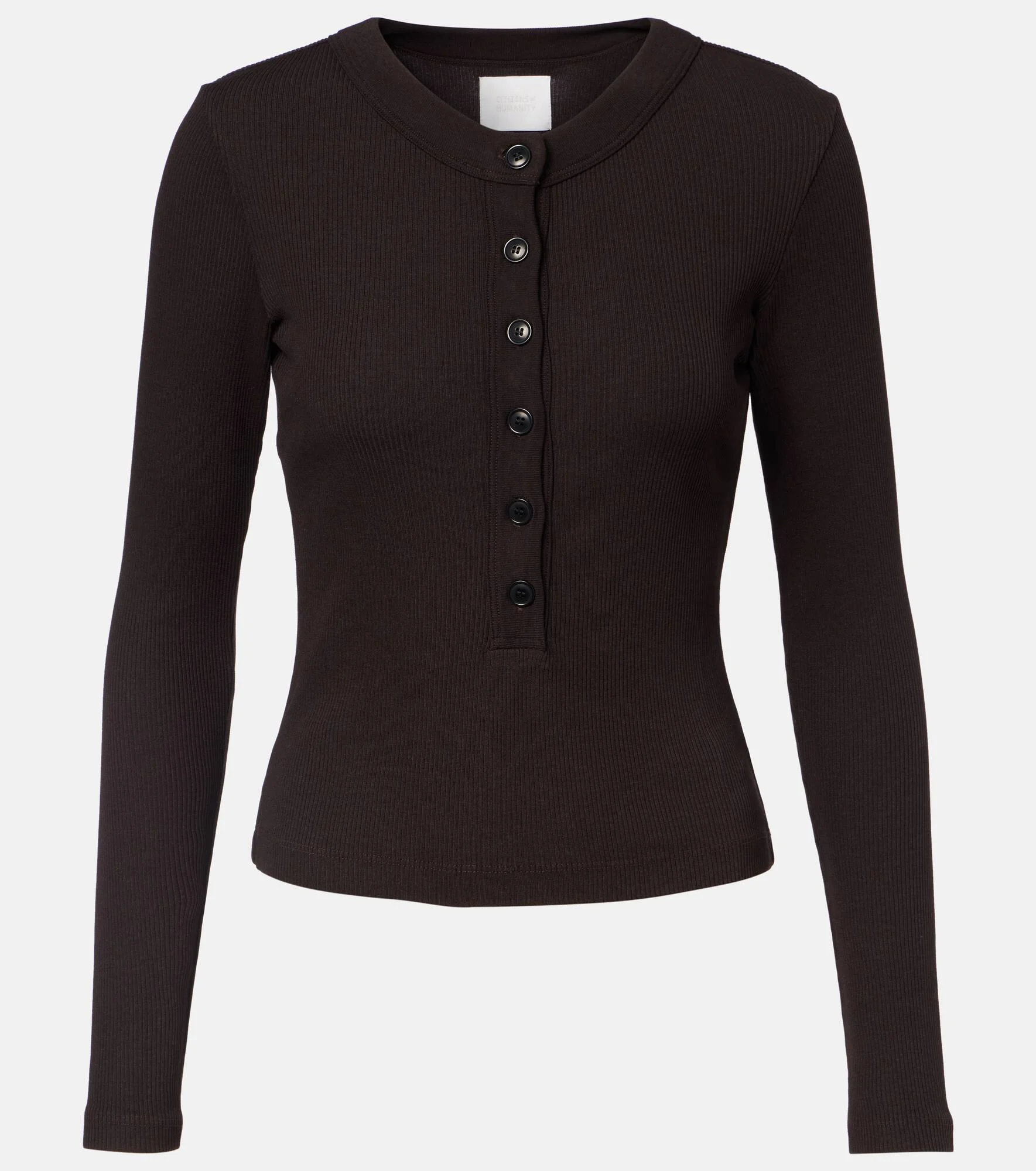 This top from Citizens of Humanity is constructed from ribbed-knit jersey and features a long-sleeved silhouette with a crew neckline. The slim-fit design is complete with a partially buttoned front placket. Product Details - Material: 49% cotton (organic), 49% lyocell, 2% elastane - Care instructions: machine wash cold - Made in the USA - Designer color name: Chocolate - Item color: brown - Closure: partially buttoned front - Item number: P01115523 Size & Fit - True to size - Fitted - Stretchy fabric - Slightly cropped - The model seen in the picture is 178cm-5'10" and wearing a size XS