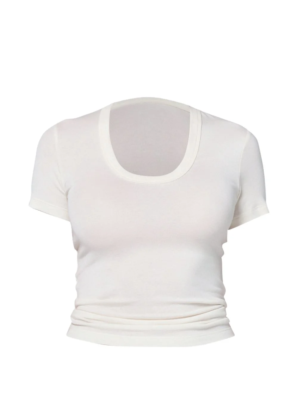 ribbed T-shirt Highlights - Cream - Ribbed texture - Round neck - Short sleeves Made in United States Composition Lyocell 95%, Spandex/Elastane 5%