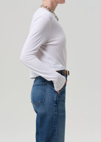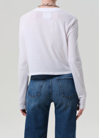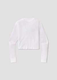 The Sabine Cropped Tee offers an elevated take on the everyday long sleeve, cut in ultra-light cotton jersey for a soft, breathable feel. A versatile staple that pairs effortlessly with denim or tailoring. This fit is true to size. Looks Like: Clean bright white cropped long sleeve tee Feels Like: Soft yet breathable lightweight jersey cotton From our HUMANITY Collection DETAILS Body Length: 21 1/2" Chest: 39 1/2" Sleeve Length: 23 3/4" Model is 5'10" and wearing a size Small Fabric Content: 100% Cotton Care Instructions: Machine wash cold inside out with like colors. Do not bleach. Tumble dry low. Made in USA with imported materials 9399-1642_WHT