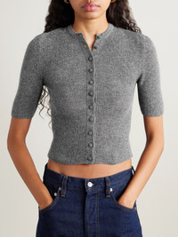 Tabitha ribbed wool and cashmere-blend cardigan Gray
