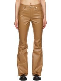 Slim-fit flared stretch buffed RenTec recycled leather-blend pants. · High-rise · Belt loops · Five-pocket styling · Zip-fly · Logo patch at outseam · Logo-engraved silver-tone hardware Supplier color: Camel 50% recycled leather, 30% polyurethane, 10% viscose, 10% polyester. Made in United States 232030F084001