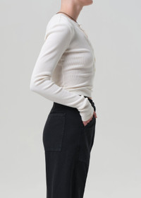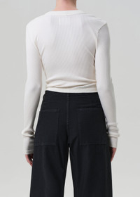The ‘Varra’ is a refined henley crafted from ultra-soft ribbed cotton with supportive stretch. Featuring a close fit and subtle neckline detailing, it’s a modern essential designed to layer or stand alone with ease. This fit is true to size. Looks Like: Off white long sleeve henley Feels Like: Ultra-soft, ultra-supportive organic cotton rib with a hint of stretch that holds the body From our HUMANITY Collection DETAILS Body Length: 21 1/2" Sleeve Length: 24 1/2" Model is 5'10" and wearing a size Small Fabric Content: 49% Organic Cotton 49% Tencel Lyocell 2% Spandex Care Instructions: Machine wash cold inside out with like colors. Do not bleach. Tumble dry low. Made in USA with imported materials 9400-3004_PMINA