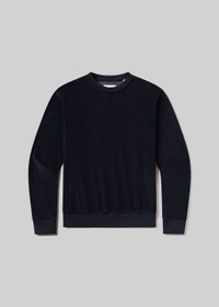Plush and nostalgic, the Vintage Crewneck is crafted from ultra-soft velour with a subtle sheen and gentle drape. The long sleeve silhouette nods to classic athletic wear, reimagined with a refined touch. An easy layering piece with standout texture—perfect solo or styled under structured outerwear. This fit is true to size. Looks Like: Dark navy velour long sleeve crewneck Feels Like: Super soft and luxurious plush velour with a smooth yet gentle feel From our HUMANITY Collection DETAILS Body Length: 22 3/4" Chest: 42" Sleeve Length: 21 3/4" Model is 5'10" and wearing a size Small Fabric Content: 80% Cotton 20% Polyester Care Instructions: Machine wash cold inside out with like colors. Do not bleach. Tumble dry low. Made in USA with imported materials 9460-1876_NOTTE