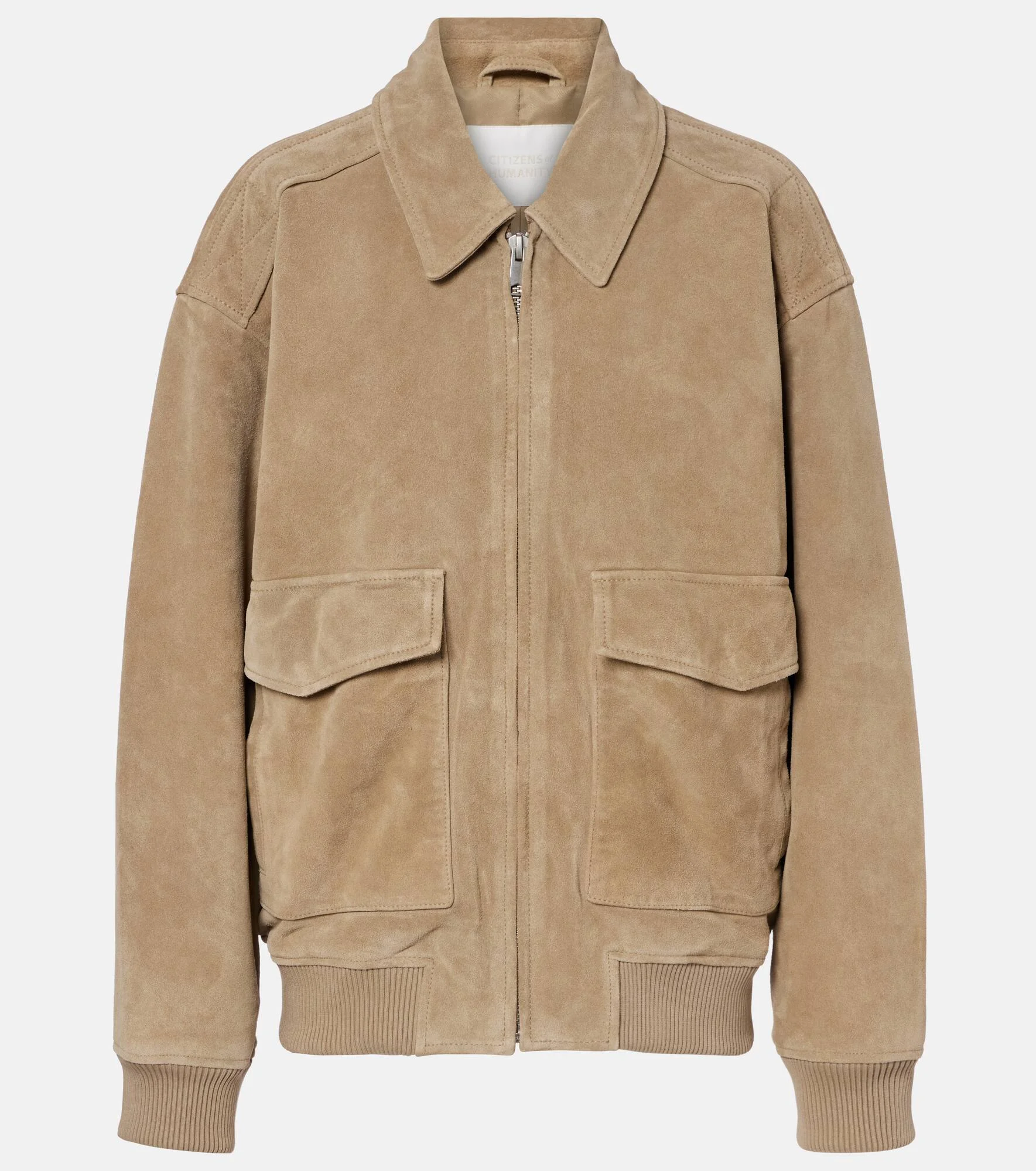 Founded in 2003, Los Angeles label Citizens of Humanity has become synonymous with quality denim. Carefully crafted from suede, the Vivienne blouson jacket features a zipper fastening, ribbed-knit trims, and flap pockets. Product Details - Material: 100% leather (suede) - Care instructions: dry clean - Made in India - Color: beige - Designer color name: Deep Olive (Md/Lt Green) - Lining: 100% polyester - Closure: buttoned front - Pockets: snap-buttoned pockets, welt pockets - Cuff: ribbed - Hem: ribbed - Item number: P01143129 Size & Fit - True to size - Dropped shoulders - Designed for a loose fit - Elasticated hem - Non-stretchy fabric - Falls below the hip - The model seen in the picture is 178cm-5'10" and wearing a size XS