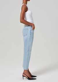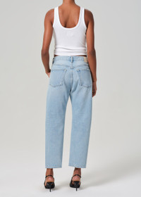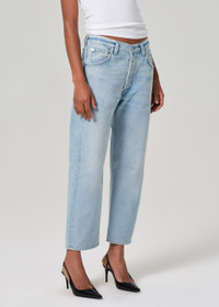 Worn-in and easy, the Winslow channels vintage denim with a modern edge. Crafted from soft, non-stretch regenerative cotton, the light washed indigo and subtle fading give it a laid-back feel. Style it low on the hips with a tucked tee or oversized button-down. This fit is true to size. Looks Like: Light washed out indigo denim Feels Like: Rigid, non-stretch cotton denim with a soft hand for all day wearability This product is made with regenerative cotton from Citizens of Humanity Group’s Regenerative Cotton Program. Our program collaborates closely with farmers both domestically and internationally, nurturing growth, fostering education, and encouraging the widespread adoption of regenerative agricultural practices. Eco-Indigo is a first-of-its-kind, high-performance textile dye. It transforms renewable resources like sugar through fermentation and green chemistry to create vibrant, lasting COLOR. This groundbreaking process reduces energy consumption, CO₂ emissions, and dependence on fossil fuels, thus help preserving our environment. Now applied to our regenerative cotton denim, Eco-Indigo is coloring the way for a more sustainable future. From our HUMANITY Collection DETAILS Closure: Button Fly Rise: 11 1/4" Inseam: 26" Leg Opening: 15 1/2" Model is 5'10" and wearing a size 27 Fabric Content: 100% Regenerative Cotton Care Instructions: Machine wash cold inside out with like colors. Do not bleach. Tumble dry low. Made in Turkey with imported materials 2182-1810_PIPPA