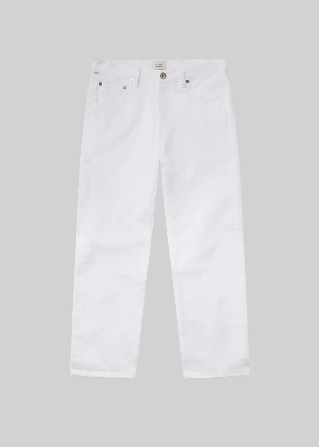 The best new boyfriend. The Winslow sits just above the hip with a chic vintage-inspired leg shape. This fit is true to size. Looks Like: True clean white denim Feels Like: Rigid, non stretch denim with an authentic feel From our HUMANITY Collection DETAILS Closure: Button Fly Rise: 11 1/4" Inseam: 26" Leg Opening: 15 1/2" Model is 5'10" and wearing a size 27 Fabric Content: 100% Cotton Care Instructions: Machine wash cold inside out with like colors. Do not bleach. Tumble dry low. Made in USA with imported materials 2182-1248_CANYO
