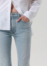 A refined take on the everyday straight leg, the ‘Zurie’ is cut from comfort stretch denim with a soft, flexible feel. The high-rise silhouette offers structure without stiffness, finished in a light vintage-inspired wash with gentle fading and whiskering. Style it with everything from tailored shirting to easy knits. This fit is true to size. Looks Like: Light indigo denim pant Feels Like: Japanese comfort stretch, archive denim with a super soft hand for all day wearability From our HUMANITY Collection DETAILS Closure: Zip Fly Rise: 11 1/4" Inseam: 31 3/4" Leg Opening: 15 1/4" Model is 5'10" and wearing a size 27 Fabric Content: 98% Cotton 2% Polyurethane Care Instructions: Machine wash cold inside out with like colors. Do not bleach. Tumble dry low. Made in USA with imported materials 2128-1078_VILL