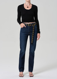 The Zurie features a contoured waist and a clean, structured top block that sits on the body with effortless ease. The sculpted leg creates an elegant, subtly bowed shape—setting this straight-leg silhouette apart. Crafted from our Signature Japanese comfort stretch denim, it offers a soft yet supportive feel with the perfect amount of stretch. This fit is true to size. Looks Like: Dark indigo denim pant Feels Like: Comfort stretch, denim with a super soft hand for all day wearability This product is made with regenerative cotton from Citizens of Humanity Group’s Regenerative Cotton Program. Our program collaborates closely with farmers both domestically and internationally, nurturing growth, fostering education, and encouraging the widespread adoption of regenerative agricultural practices. From our HUMANITY Collection DETAILS Closure: Zip Fly Rise: 11 3/4" Inseam: 31 3/4" Leg Opening: 16 1/4" Model is 5'10" and is wearing a Size 27 Fabric Content: 99% Regenerative Cotton 1% Elastane Care Instructions: Machine wash cold inside out with like colors. Do not bleach. Tumble dry low. Made in Turkey with imported materials 2128B-1854_DKIND