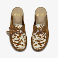 Taking the DNA of our ‘Desert Nomad’ from the 1970’s, this new mule version updates a classic from the Originals archive with a modern slip-on aesthetic. Featuring the iconic stitch down construction and Wallabee inspired vamp profile, the mule arrives in collaboration with Anthropologie for the season in versatile brown cow print. - Cow hair-on suede upper - Hand stitched apron seam - Natural pebble crepe - Two FOBS – Clarks Originals™ and Anthropologie Materials Upper Material: Suede Lining Material: Leather Sole Material: Crepe Midsole Material: Crepe/EVA Fastening Type: Lace Sock Material: Microfibre