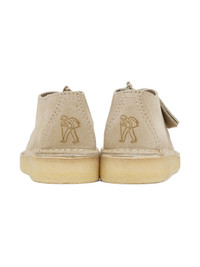 Suede derbys in beige. · Topstitching throughout · Pinched seam at vamp · Logo tags at lace-up closure · Embossed logo at heel counter · Sheepskin suede lining · FSC®-certified crepe rubber sole Supplier color: Sand suede Upper: leather. Sole: rubber. Made in Portugal 241094F120031