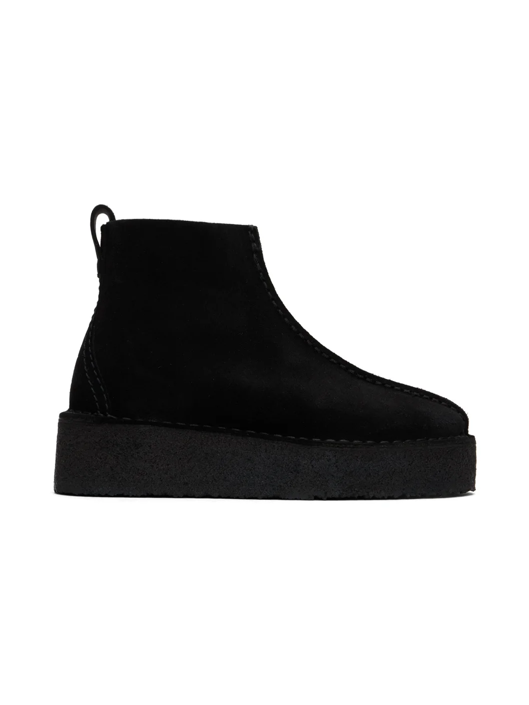 Suede boots in black. · Pinched seam at vamp · Zip closure at inner side · Pull-loop at heel tab · Gold tone graphic stamp at heel counter · Grained leather lining · Wedge heel · EVA rubber midsole · FSC-certified crepe rubber platform sole · Heel: H1.75" Supplier color: Black suede Upper: leather. Sole: rubber. Made in Portugal 242094F113007