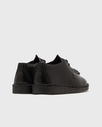 The Clarks Desert Trek Leather from the Desert Trek Leather Pack combines timeless elegance with modern sophistication. Crafted from black hi-shine leather, it features a removable kiltie for versatility, a center seam for comfort, and iconic Trek Man embossing on the heel. Three distinctive FOBs—Clarks Originals, Trek Man, and 200 Years—add subtle accents, while the natural pebble crepe sole with black sole spray ensures comfort and traction. - Polished leather upper - Removable kiltie - Center seam - Trek Man embossing on the heel - Three FOBs – Clarks Originals, Trek Man, and 200 Years - Tonal flat laces - Black leather kiltie with studs - Natural pebble crepe with black sole spray - Woven Clarks Originals logo on the sock Article number: 26183315 Gender: women Color: BLK HISHINE LEA Material: 30% Rubber, 70% Leather