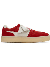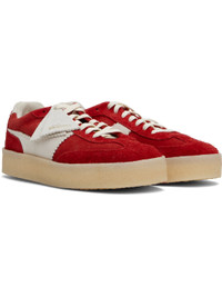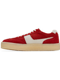 Low-top suede sneakers in red. · Logo tags at lace-up closure · Logo embossed at tongue · Padded collar · Applique with serrated edges at sides · Suede lining · FSC-certified crepe-rubber sole Supplier color: Red combination Upper: leather. Sole: rubber. Made in Viet Nam 251094F128001