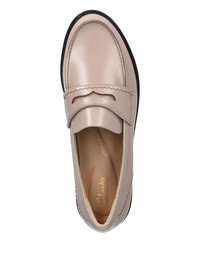 stitched detail loafers Highlights - Beige - Round toe - Decorative stitching - Slip-on design - Low block heel Imported Composition Sole: Rubber 100% Outer: Leather 100% Lining: Leather 100% SIZE & FIT Measurement HEEL 0.78 in(2 cm)