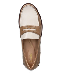 two-tone leather loafers Highlights - Beige - Raised stitching detail - Round toe - Low stacked heel - Slip-on design Imported Composition Outer: Leather 100% Lining: Leather 100% Sole: Rubber 100%
